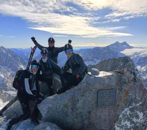 安德烈亚(左一)带领中国队员在阿尔卑斯山地区进行滑雪登山训练